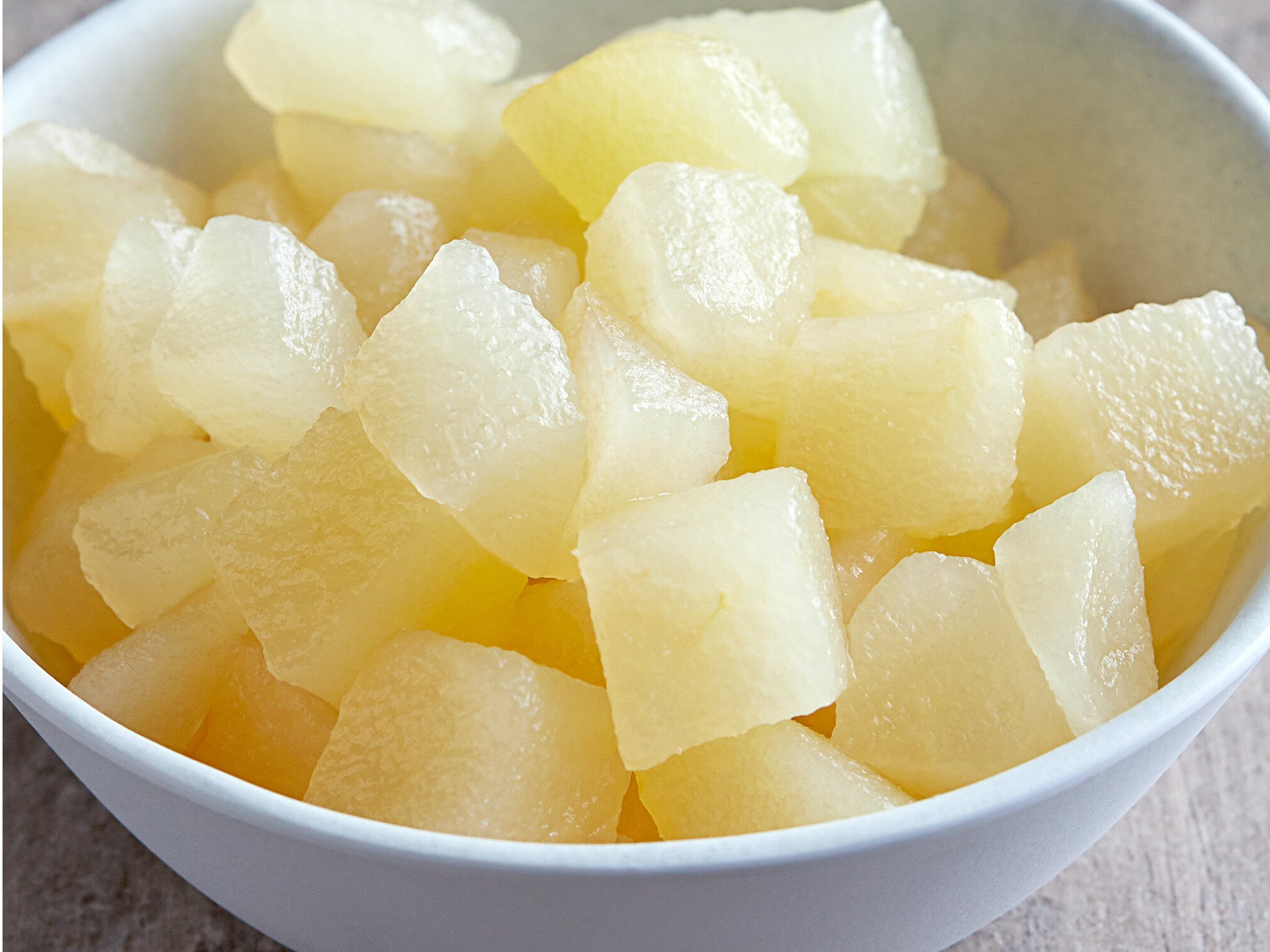 We were very nervous about trying these in our cobblers instead of using slices but decided to because the price is out of this world! luckily they were amazingly and seem better than the slices. They are very sweet and flavorful. Try these you will not regret it