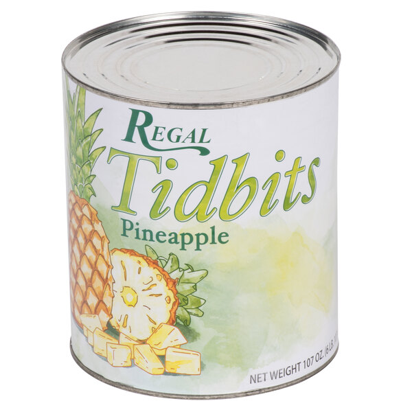 Regal Foods has everything you need for your recipes at an amazing value! Offering superior quality wholesale products, Regal Foods has a variety of canned fruits and vegetables for all of your culinary needs. This #10 can of pineapple tidbits offers easy handling and storage, making this a great option for your bustling kitchen!