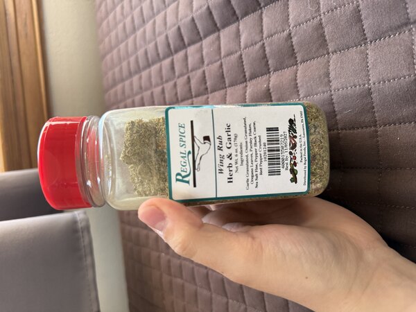 Decent wing rub with good herb balance, but the garlic flavor is too mild. Works okay for light seasoning, yet needs heavier application or extra garlic to really stand out on wings during cooking time.