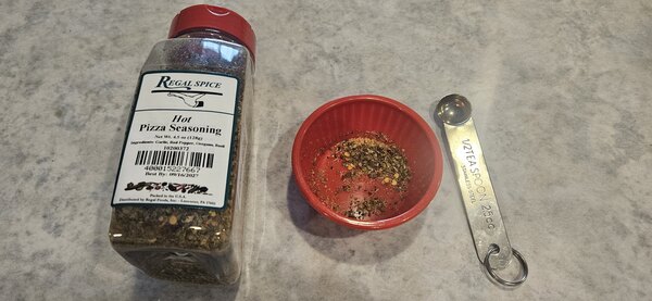 This hot pizza seasoning is really good! We prefer it over the regular seasoning. Easy to dispense and great value. Works great on pasta dishes too!