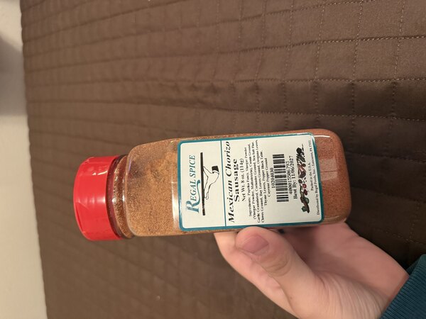 This chorizo seasoning is awful. It has very strong clove in it, big chunks of whole cloves and a vinegar taste. I get no taste of ancho chili powder which is your primary seasoning for Mexican chorizo. When you cook it, it is very light in color. We won't be ordering this one again.