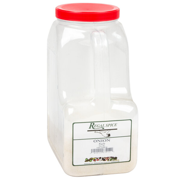 A combination of coarse-ground salt and granulated onion, Regal onion salt makes it easy to season your signature dishes with delightful, savory flavor. The onion salt granules are larger in size than onion powder but smaller than minced onion for a delicious blend of balance and texture that promises not to overpower the salt's natural flavor. This blend is perfect for meat rubs, chili, sauces, marinades, and soups. Additionally, you can choose to sprinkle this spice on pizza or bread for an extra kick of flavor. No matter what you prepare, your customers will love the robust flavor of Regal onion salt.