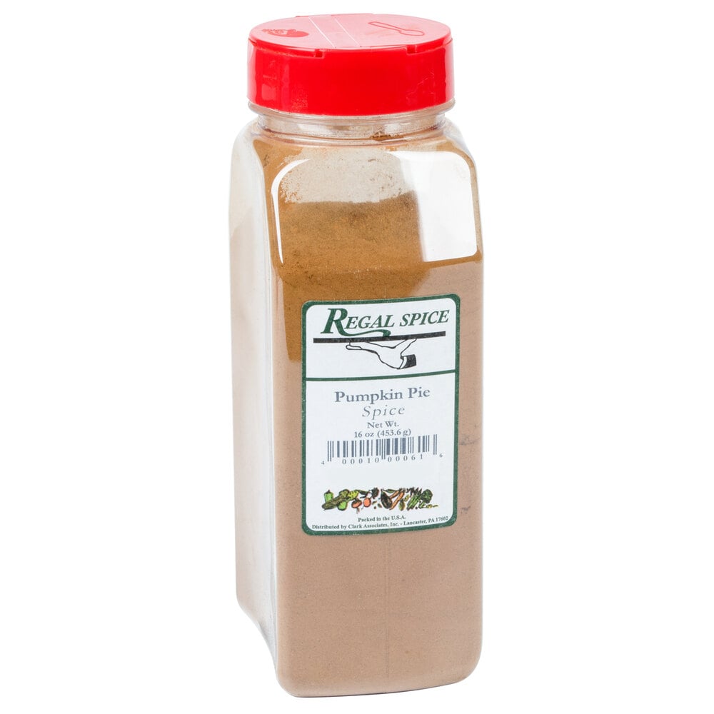 A delicious blend of cinnamon, nutmeg, and other spices, Regal pumpkin pie spice is designed to enhance the flavors and aromas of your traditional pumpkin pie recipe. Since this decadent blend of spices has a rich yet sweet taste, it’s also great in muffins, cheesecakes, coffee cakes, pumpkin bread, and other baked goods. Regal pumpkin pie spice can even be used in lattes, hot teas, and ice cream. Additionally, the handy 16 oz. container provides with you easy access to this spice, making it great for bakeries and coffee shops.