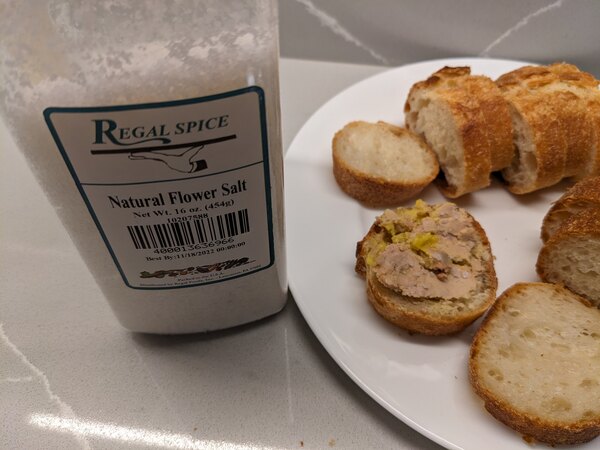 The crystals of this salt stay crunchy for a long time because they take a long time to dissolve. It isn't as coarse as other finishing salts. This is perfect for finishing meat and fish dishes as well as vegetables too. The salt tastes very high in mineral content, and it is a little moist.