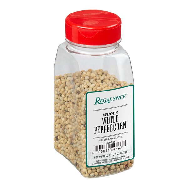 The Regal Whole White Peppercorns are good quality white peppercorns. The have the fiery taste you expect from white pepper while also allowing you to keep you dish a white color. The 8 oz. size is great from home or professional use.