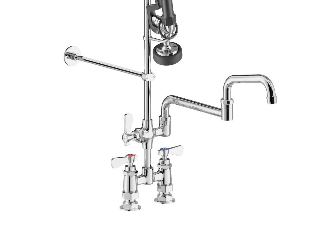 - Item #: 750prd418djWaterloo 1.15 GPM Deck-Mounted Pre-Rinse Faucet with 4" Centers and 18" Double-Jointed Add-On Faucet