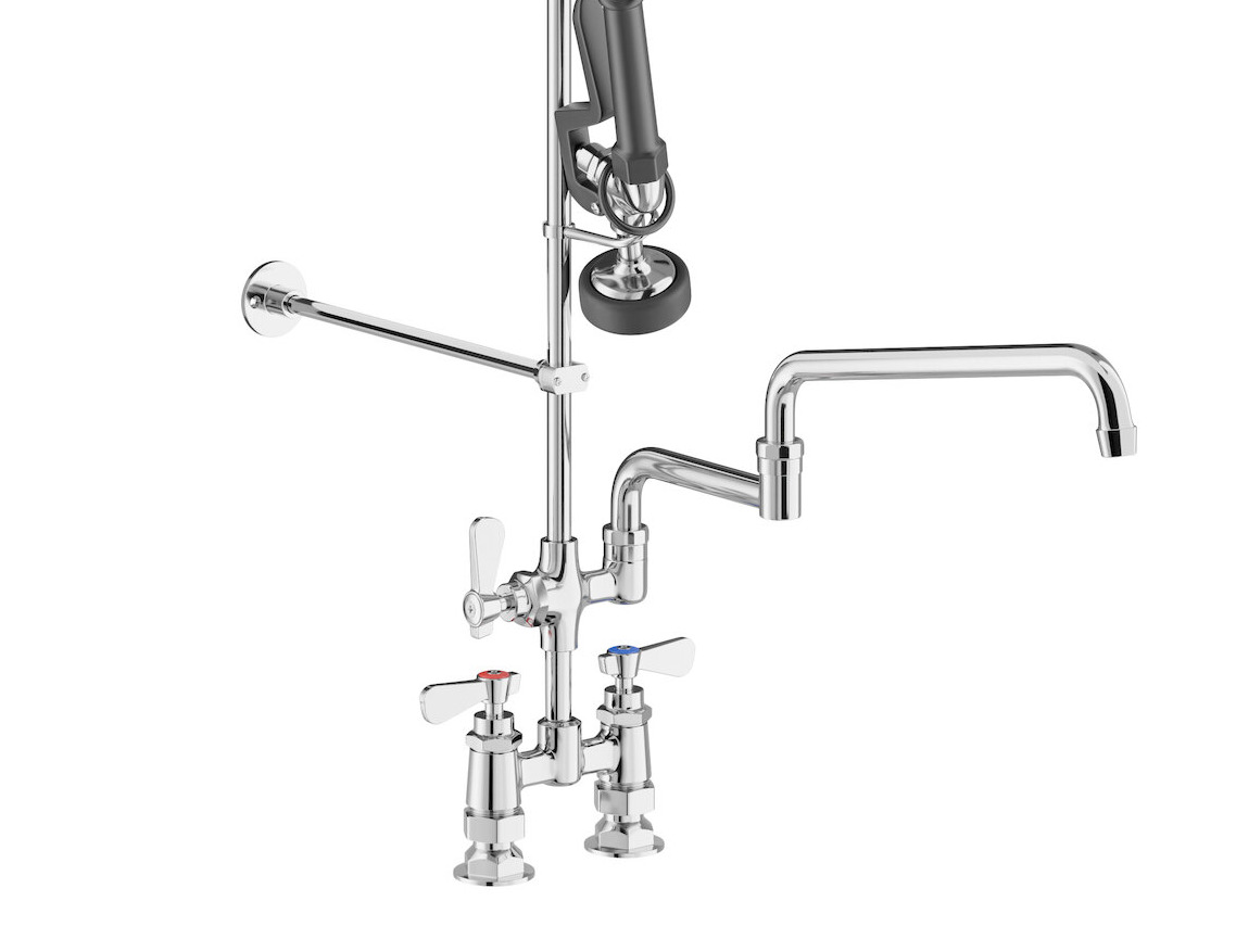 - Item #: 750prd418djWaterloo 1.15 GPM Deck-Mounted Pre-Rinse Faucet with 4" Centers and 18" Double-Jointed Add-On Faucet