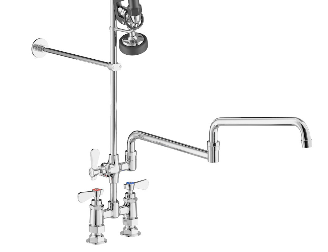 - Item #: 750prd418djWaterloo 1.15 GPM Deck-Mounted Pre-Rinse Faucet with 4" Centers and 18" Double-Jointed Add-On Faucet