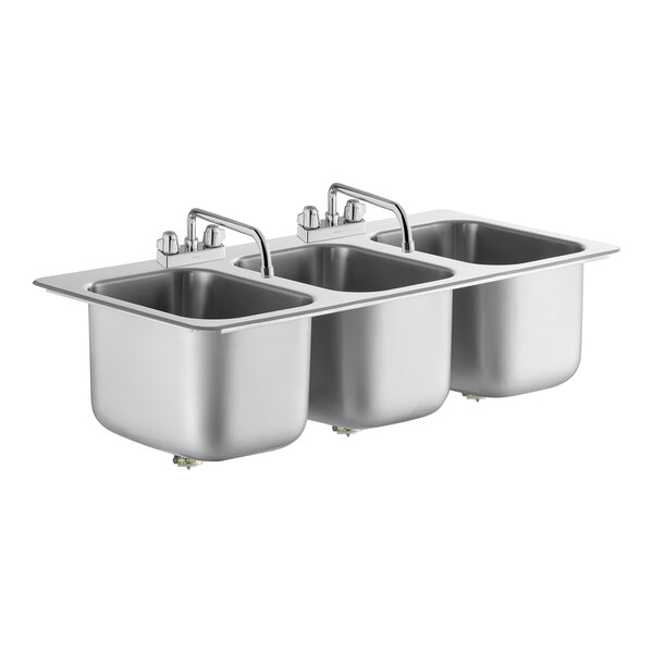 - Item #: 600di31416rRegency 14" x 16" x 10" 20 Gauge Stainless Steel Three Compartment Drop-In Sink with (2) 12" Swing Faucets