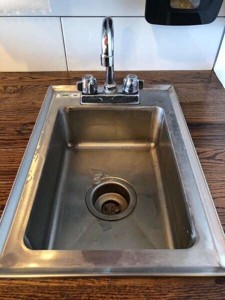This sink is a perfect fit for our Italian ice push cart the health department was impressed with the sink and we passed the inspection without a problem