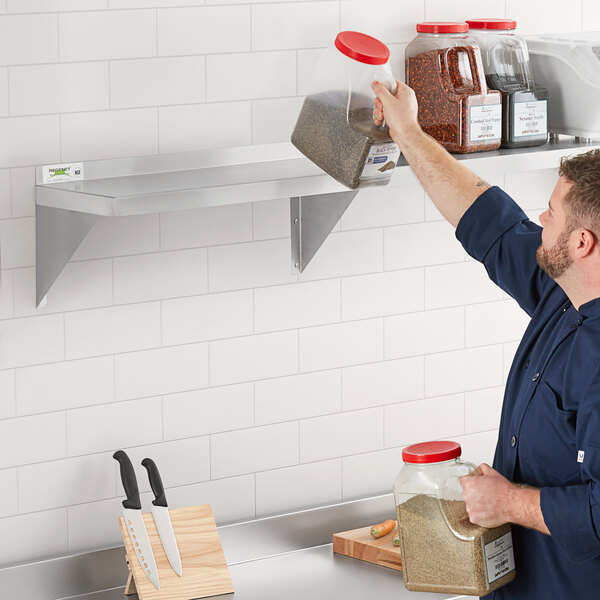To keep food, dishes, or other small items from cluttering your work area, add extra storage above your work table or countertop with this Regency solid wall shelf.