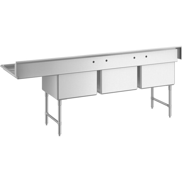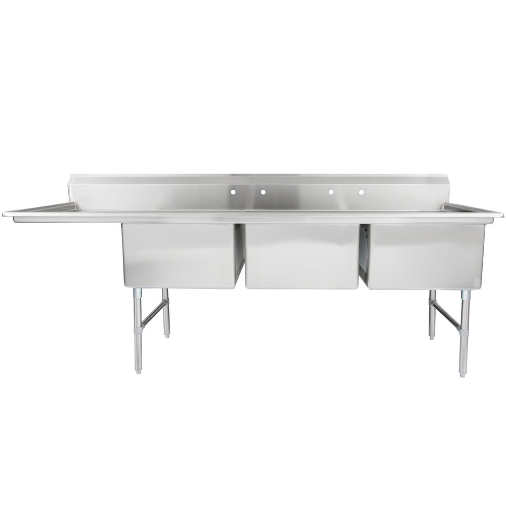Great for busy commercial kitchens, this 3 compartment sink includes a right drainboard to maximize your work space. Plus, its durable construction and enhanced features make it easy to establish an efficient work flow to wash dishes or prep food.