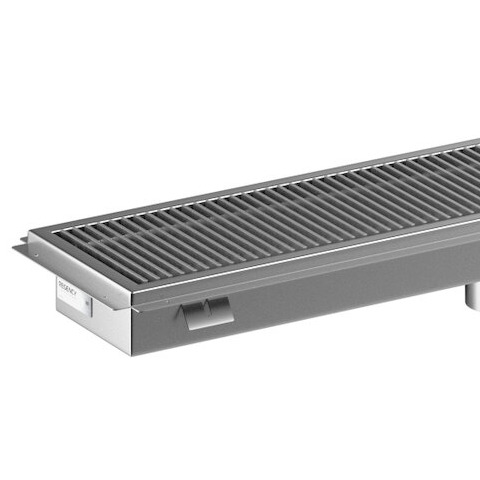 This Regency floor trough comes with a removable 3/16" x 1" subway-style grating that boasts an even 9/16" spacing between each bar. This spacing permits fluids to easily flow through, and it blocks potential clogs while enabling equipment and casters to roll over the trough without getting stuck. Plus, this item was constructed with a convenient creased design to ensure proper draining into its 3" long plumbing sleeve, which accommodates waste pipes up to 4" in diameter.