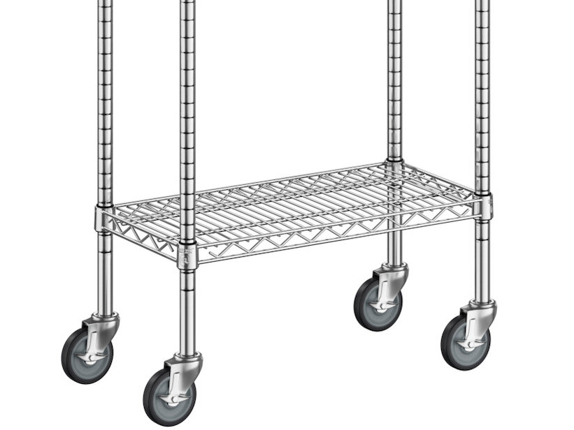 View All ItemsKeep your storage area organized with this Regency NSF chrome mobile wire shelving starter kit with 4 shelves.
