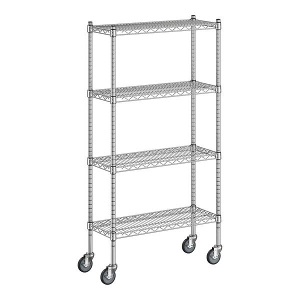 View All ItemsKeep your storage area organized with the Regency 12" wide NSF chrome mobile wire shelving starter kit with 4 shelves and 54" posts.