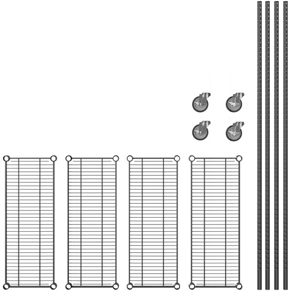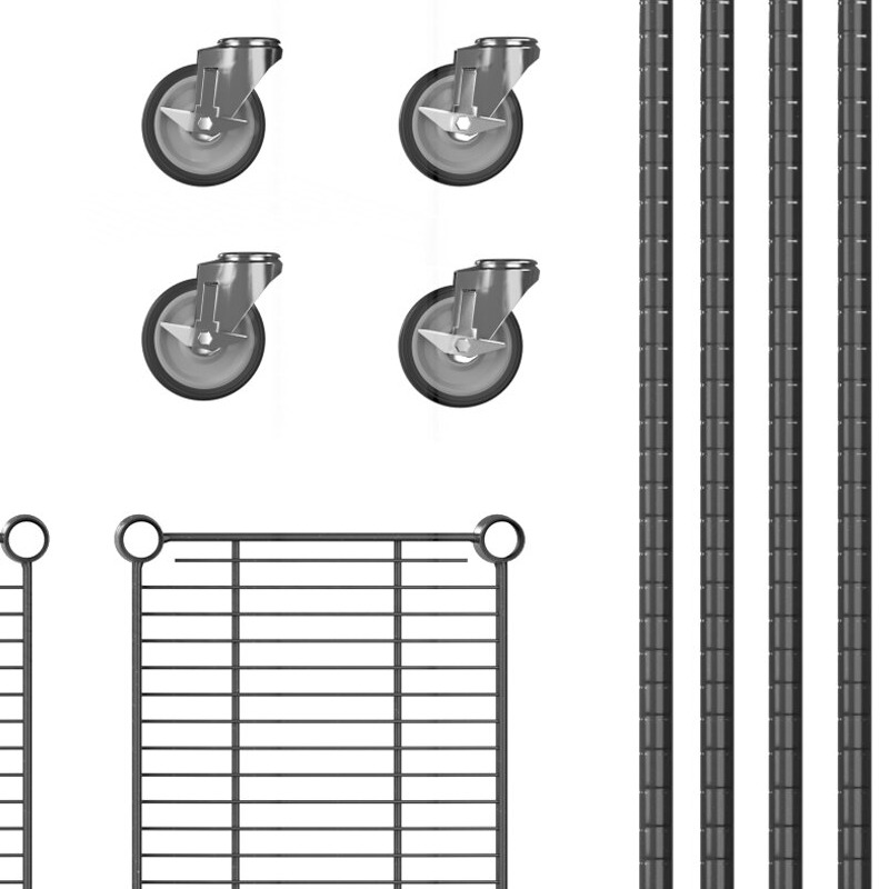 View All ItemsKeep your storage area organized with the Regency 12" x 24" NSF black epoxy 4-shelf kit with 64" posts and casters!