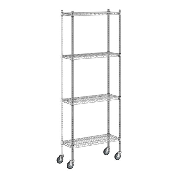 View All ItemsKeep your storage area organized with this Regency NSF chrome mobile wire shelving starter kit with 4 shelves.