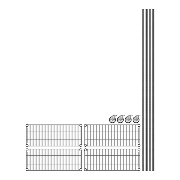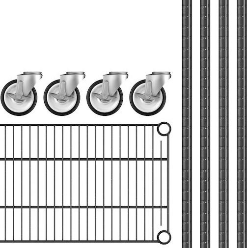 View All ItemsKeep your storage area organized with the Regency 12" wide NSF black epoxy mobile wire shelving starter kit with 4 shelves!