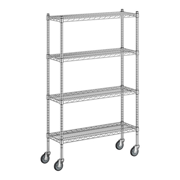 View All ItemsKeep your storage area organized with the Regency 12" wide NSF chrome mobile wire shelving starter kit with 4 shelves and 54" posts.