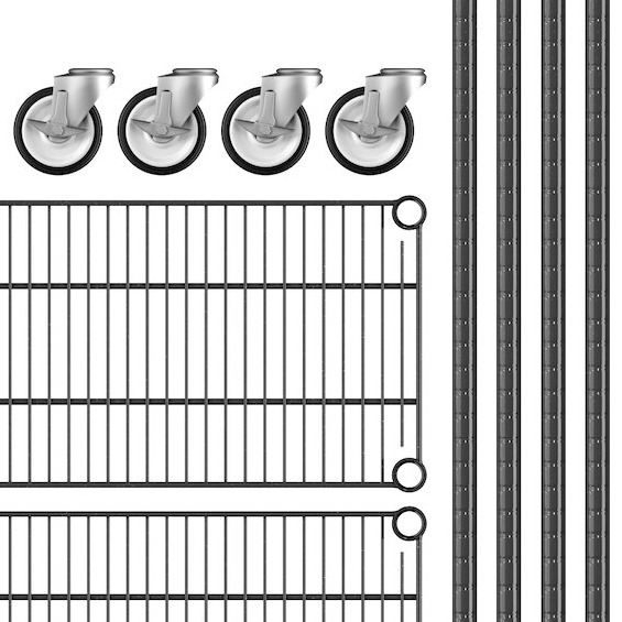 View All ItemsKeep your storage area organized with this Regency NSF black epoxy mobile wire shelving starter kit with 5 shelves.
