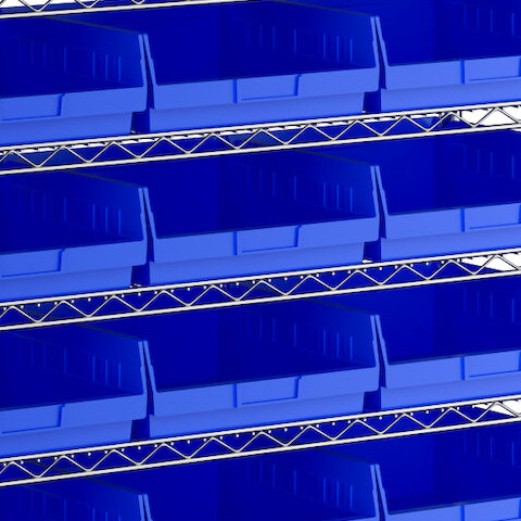 The included high-density, injection-molded shelf bins are designed to withstand the rigors of industrial environments, feature a highly durable polypropylene construction with reinforced edges, and are impervious to most chemicals.
