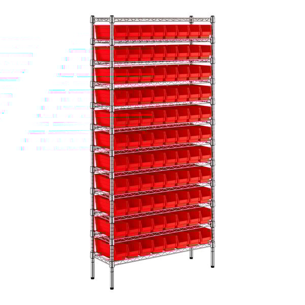 View All ItemsMaintain an organized industrial space with this Regency 12" x 36" x 74" wire shelving unit with 88 red bins.