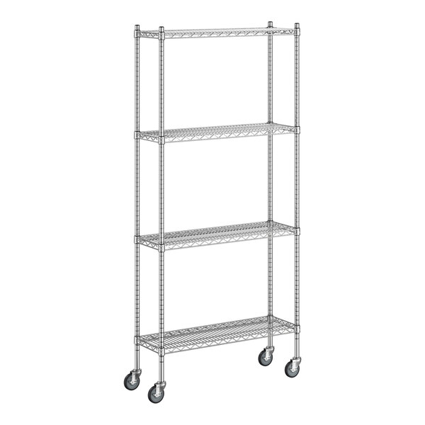 View All ItemsKeep your storage area organized with this Regency NSF chrome mobile wire shelving starter kit with 4 shelves.