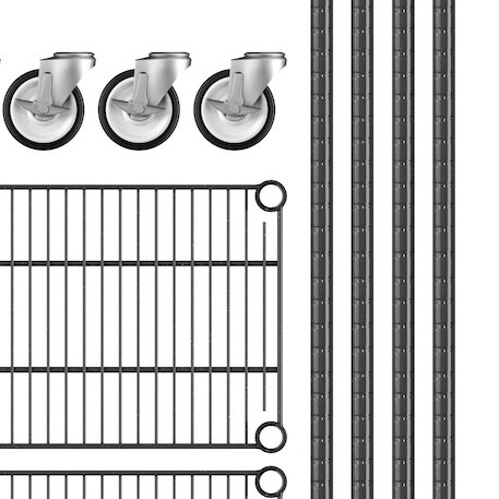 View All ItemsKeep your storage area organized with the Regency 12" wide NSF black epoxy mobile wire shelving starter kit with 4 shelves!