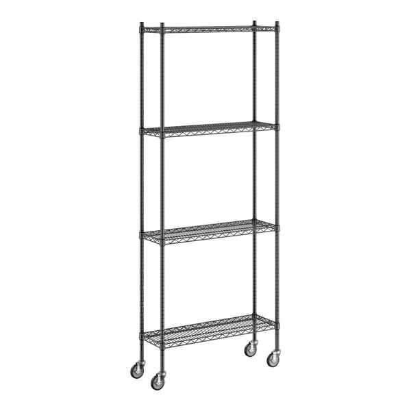 Regency 12" x 36" x 92" NSF Black Epoxy Mobile Wire Shelving Starter Kit with 4 Shelves
