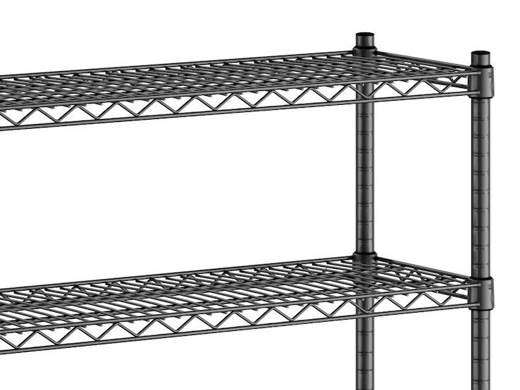 Each shelf features a wire construction, which allows for proper air flow around the stored supplies, products, or ingredients, and each shelf accommodates up to 600 lb. of evenly distributed weight.