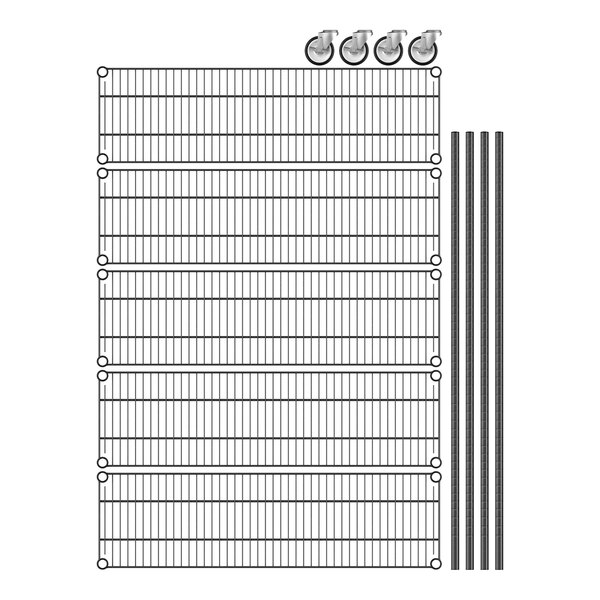 - Item #: 460b1242km55Regency 12" x 42" x 60" NSF Black Epoxy Mobile Wire Shelving Starter Kit with 5 Shelves