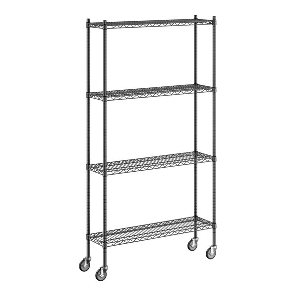 - Item #: 460b1224km54Regency 12" x 24" x 60" NSF Black Epoxy Mobile Wire Shelving Starter Kit with 4 Shelves