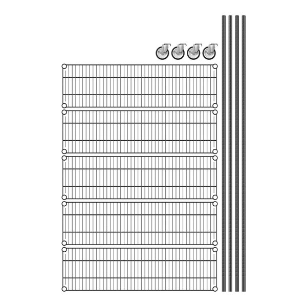 Regency 12" x 42" x 80" NSF Black Epoxy Mobile Wire Shelving Starter Kit with 5 Shelves