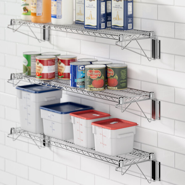 This Regency stainless steel wall-mount wire shelf provides convenience, durability, and space-efficient storage.