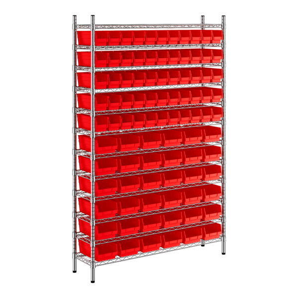 View All ItemsMaintain an organized industrial space with this Regency 12" x 48" x 74" wire shelving unit with 91 red bins.
