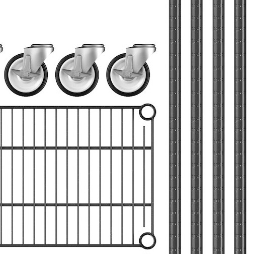 View All ItemsKeep your storage area organized with this Regency NSF black epoxy mobile wire shelving starter kit with 4 shelves.