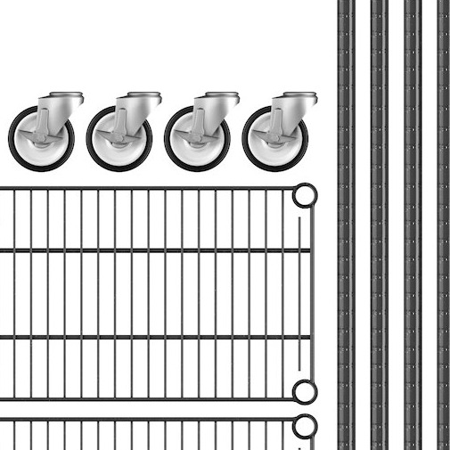 View All ItemsKeep your storage area organized with the Regency 12" wide NSF black epoxy mobile wire shelving starter kit with 4 shelves!