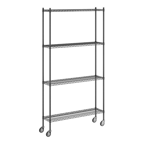 - Item #: 460b1248km84Regency 12" x 48" x 92" NSF Black Epoxy Mobile Wire Shelving Starter Kit with 4 Shelves