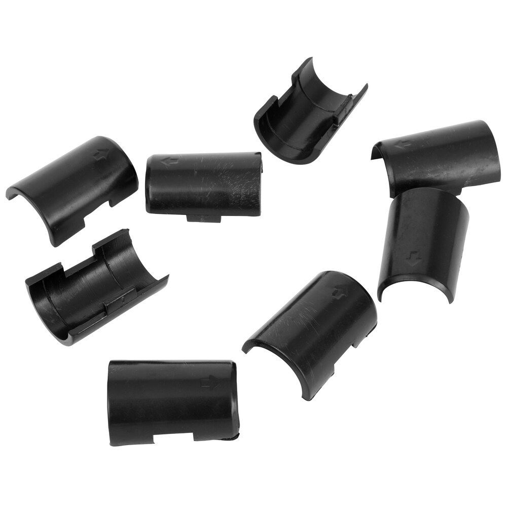 This shelf comes with 4 pairs of split sleeves for quick and easy setup and installation. To assemble, simply snap 2 split sleeves around each post at one of the incrementally notched lines. After you snap the split sleeves on, fit the shelf down over each post to hold it in place.