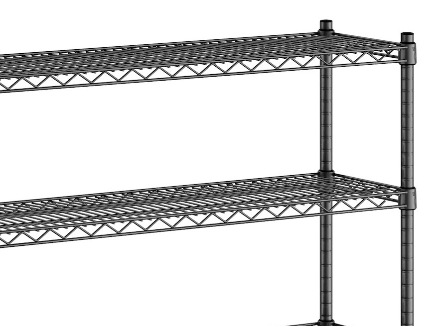 Each shelf features a wire construction, which allows for proper air flow around the stored supplies, products, or ingredients, and each shelf accommodates up to 600 lb. of evenly distributed weight.