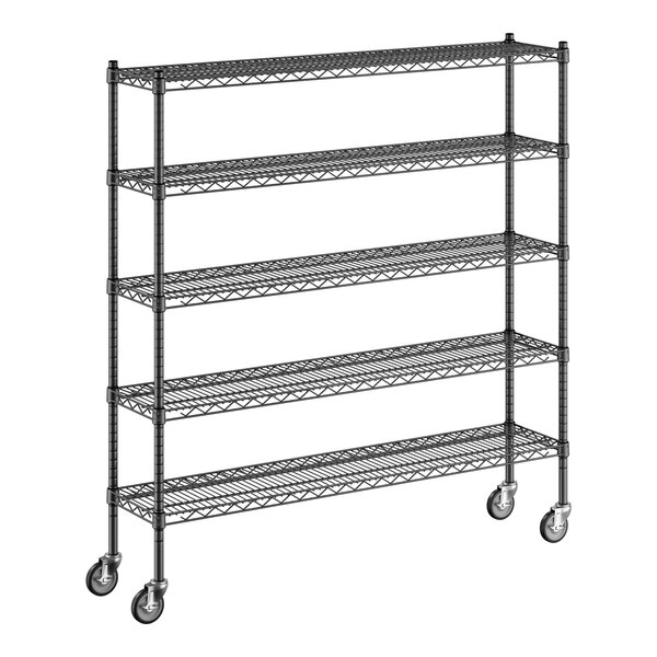 Regency 12" x 54" x 60" NSF Black Epoxy Mobile Wire Shelving Starter Kit with 5 Shelves