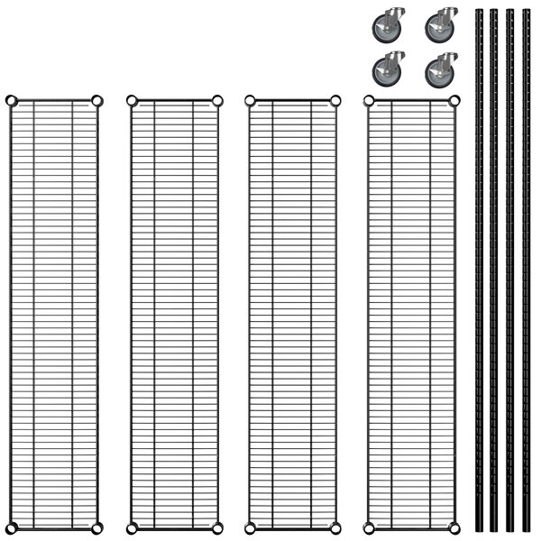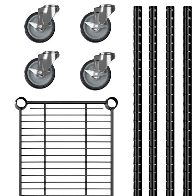 View All ItemsKeep your storage area organized with the Regency 12" x 24" NSF black epoxy 4-shelf kit with 64" posts and casters!