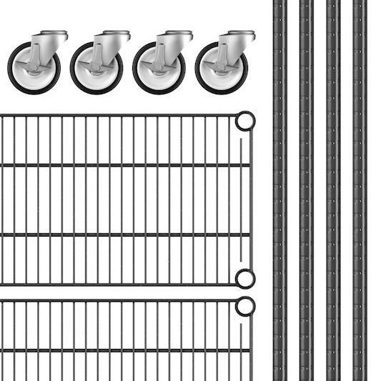 View All ItemsKeep your storage area organized with the Regency 12" wide NSF black epoxy mobile wire shelving starter kit with 4 shelves!