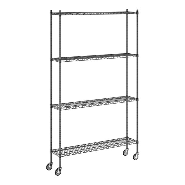 - Item #: 460b1254km84Regency 12" x 54" x 92" NSF Black Epoxy Mobile Wire Shelving Starter Kit with 4 Shelves