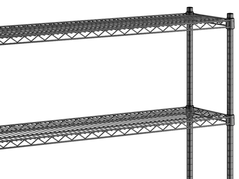 Each shelf features a wire construction, which allows for proper air flow around the stored supplies, products, or ingredients, and each shelf accommodates up to 600 lb. of evenly distributed weight.