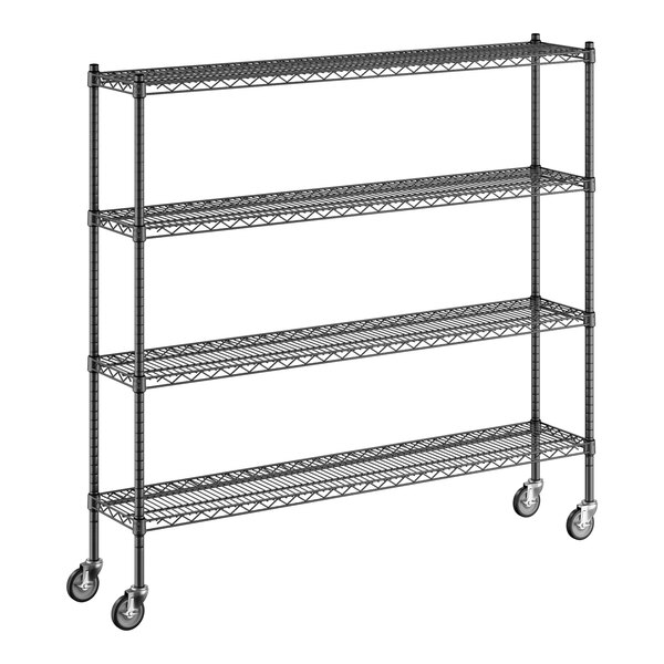 - Item #: 460b1424km74Regency 14" x 24" x 80" NSF Black Epoxy Mobile Wire Shelving Starter Kit with 4 Shelves