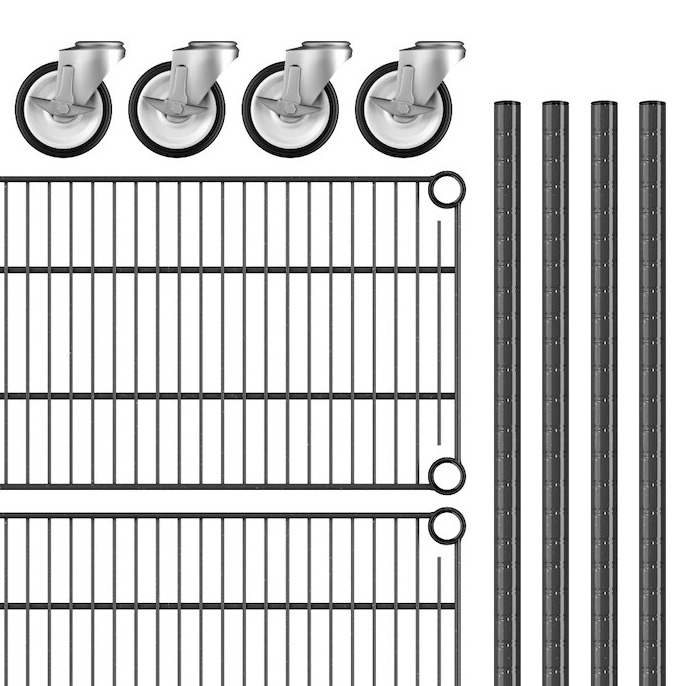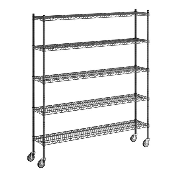 Keep your storage area organized with this Regency NSF black epoxy mobile wire shelving starter kit with 5 shelves.