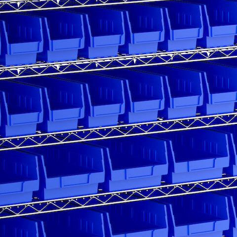 The included high-density, injection-molded shelf bins are designed to withstand the rigors of industrial environments, feature a highly durable polypropylene construction with reinforced edges, and are impervious to most chemicals.