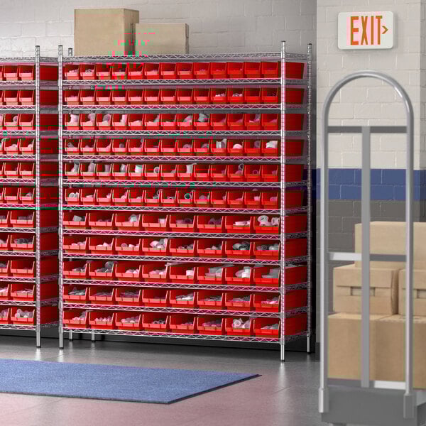 View All ItemsMaintain an organized industrial space with this Regency 12" x 60" x 74" wire shelving unit with 118 red bins.