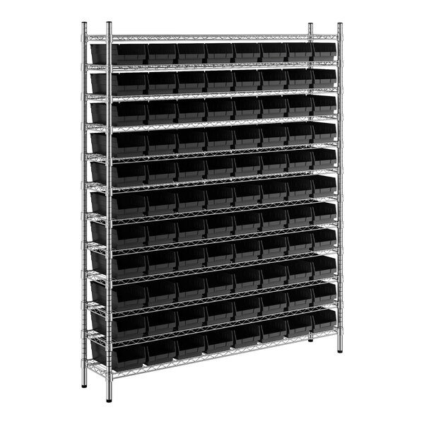 View All ItemsMaintain an organized industrial space with this Regency 12" x 60" x 74" wire shelving unit with 88 black bins.
